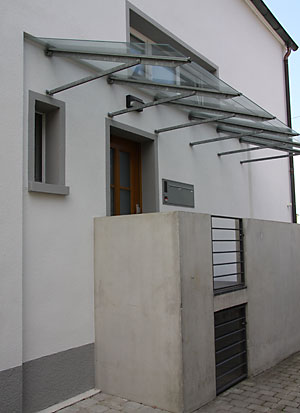 Energetische Sanierung (Gebäudehülle und Gebäudetechnik) mit Vakuumdämm-Verbundsystem im Eingangsbereich.